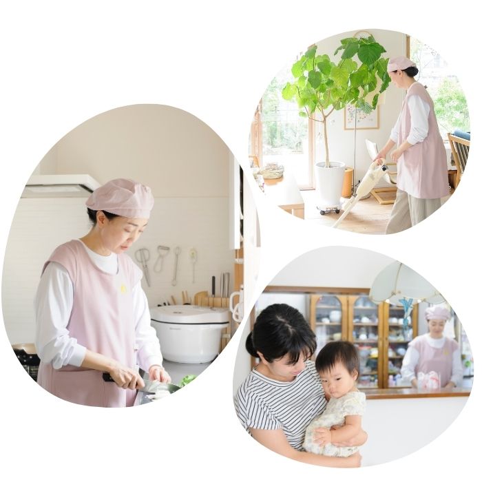 ごはんづくりや赤ちゃんのお世話など、まるで「実家のお母さん」のように日常を支えます。